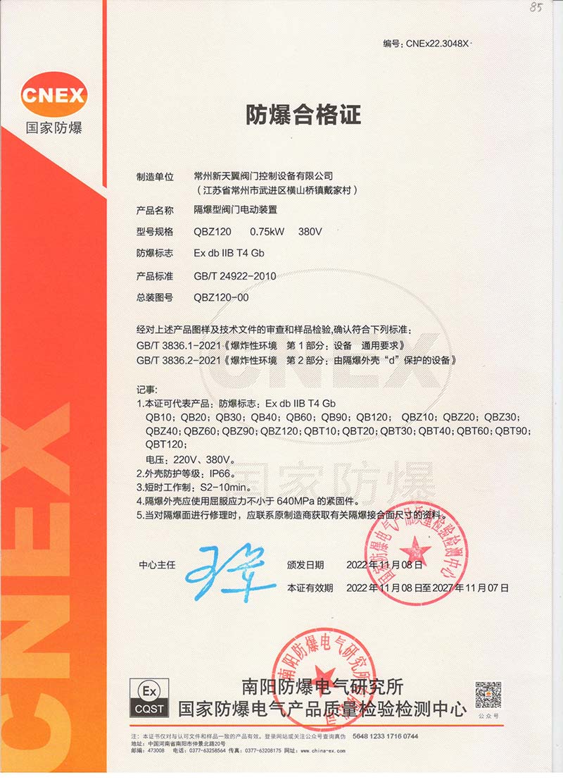 隔爆型QB QBZ QBT 220380中國國家強制性產品認證證書107.2
